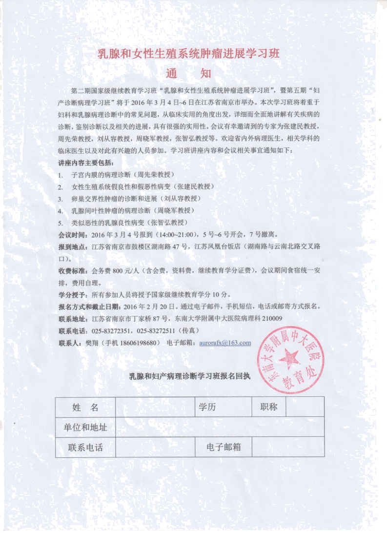 乳腺和女性生殖系统肿瘤进展学习班通知