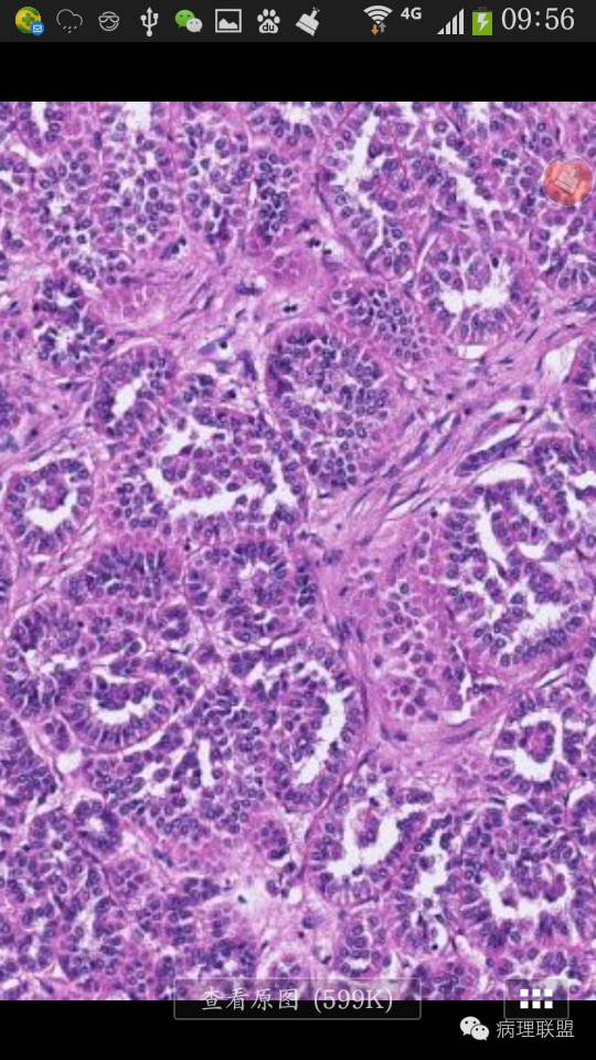 这个我再仔细看下。但,我们这例腺管结构不像是粘附差所致,是真的腺管;间质目前还没有看到有间质粘液变性区域;inhibina, syn, menlana是真的不阳,灶性都没有...