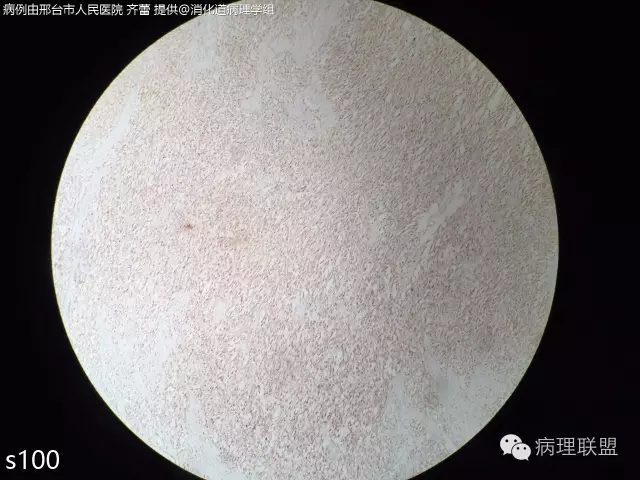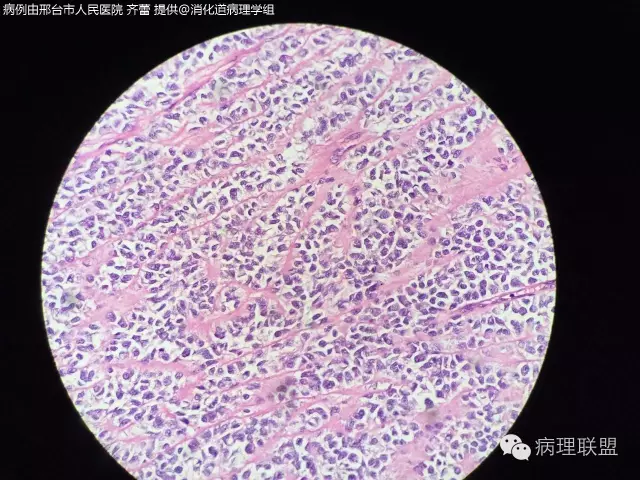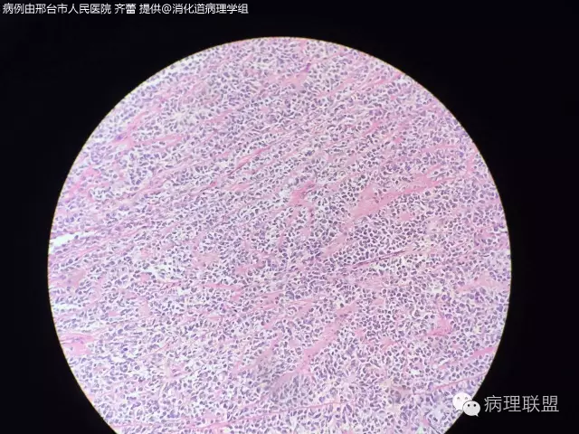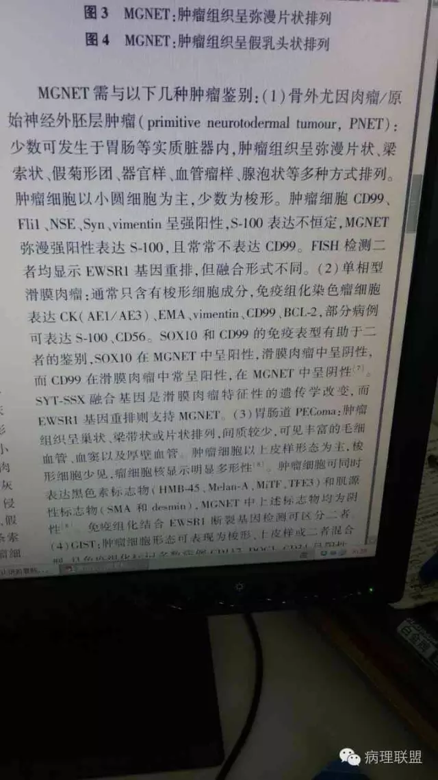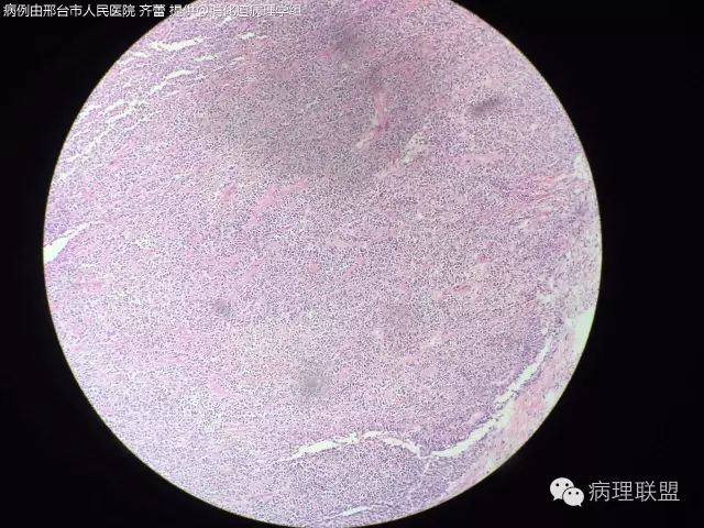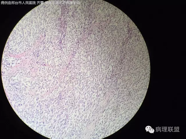 @齐蕾,非常少见的好病例!同意周老师意见,最好再加做一下分子检测(FISH或PCR)证实一下有无EWSR1重排,IHC的SOX10阳性也有帮助。除了图中所示形态特点外,这类肿瘤中还可见散在的多核巨细胞,不妨再找找,show给大家看看