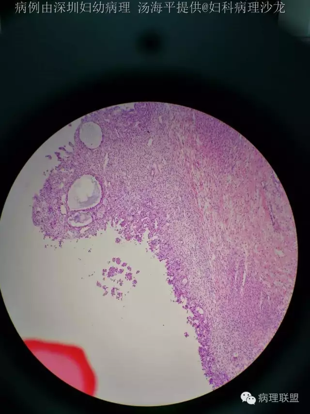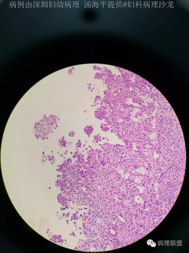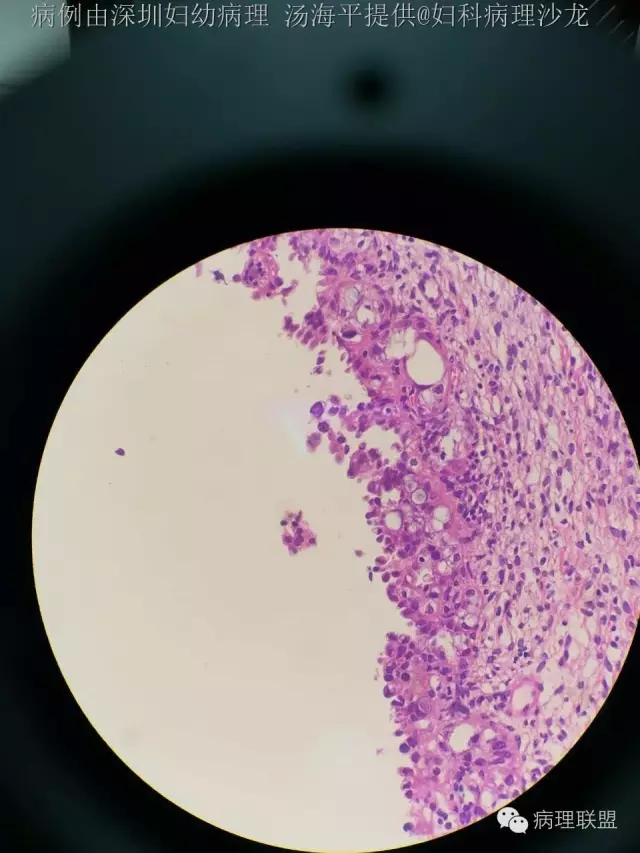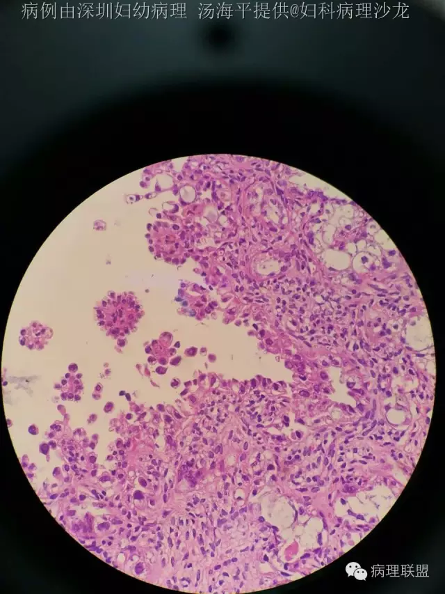 @深圳市人民医院病理科郭晓静 @佛山妇幼病理周东华 细胞核染色质尚温和,未见核分裂以及间质浸润,所以一直犹豫够不够报透明细胞癌,好像透明细胞又没有交界性一说