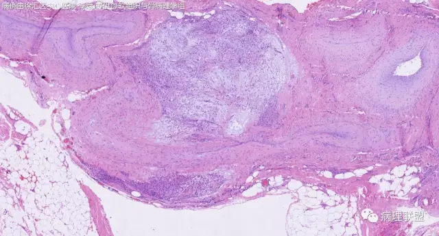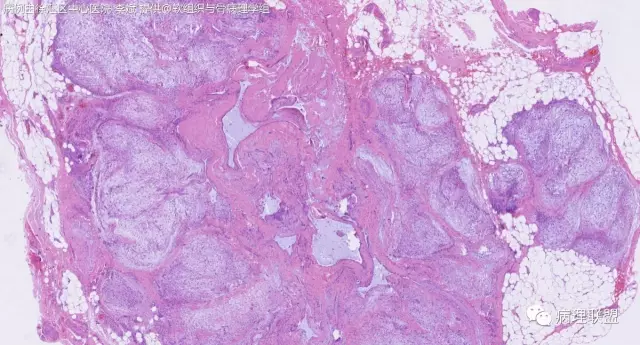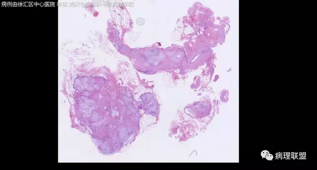 女,64岁,右腕部肿块,灰白不整形1*1*0.8cm(病例由徐汇区中心医院 李斌提供,致谢!)
