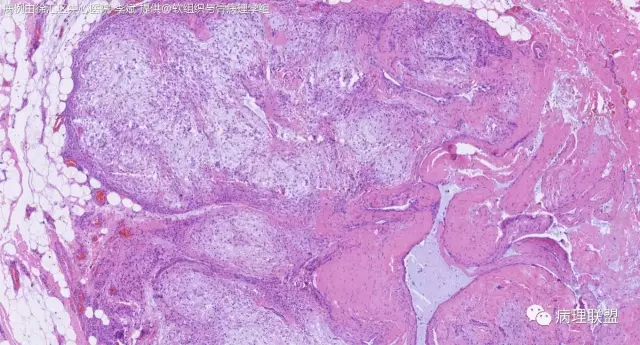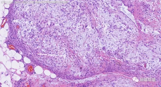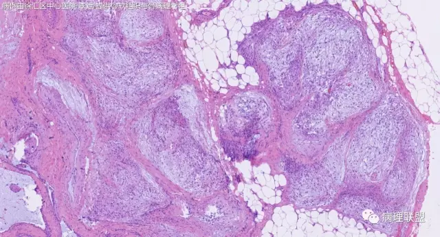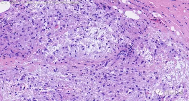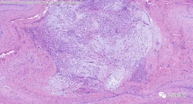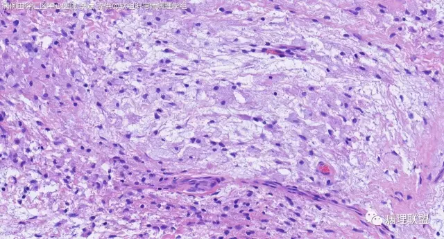 @周泉 周老师您好,李斌老师第一个病例里细胞都是上皮样的包浆宽的,嗜酸,粘液瘤细胞细胞梭的星形的,所以我考虑是神经鞘的了,您觉得粘液瘤细胞也可以这种形态吗?