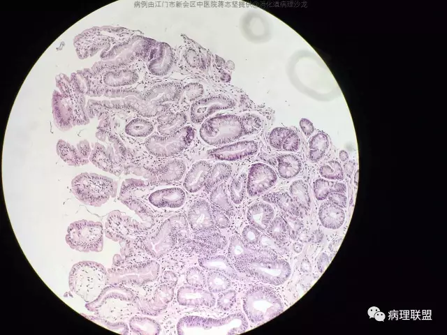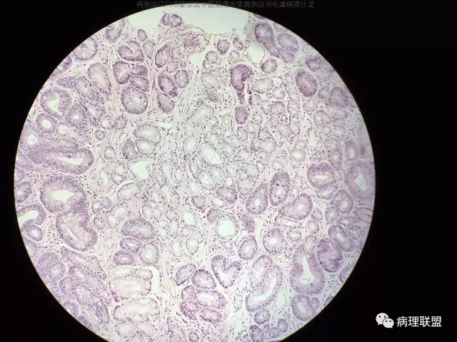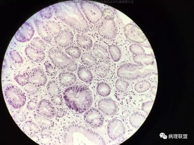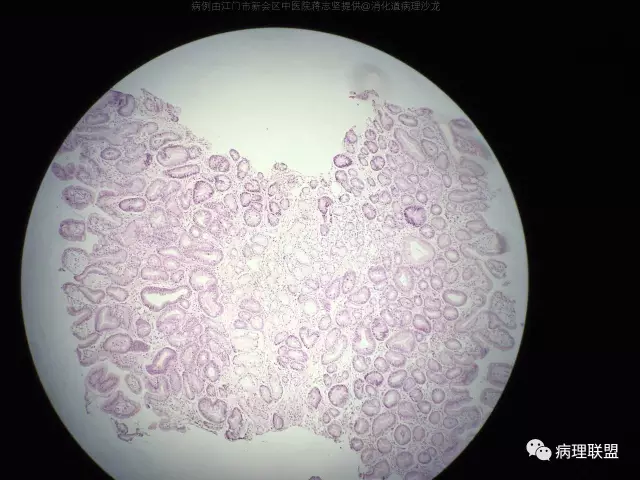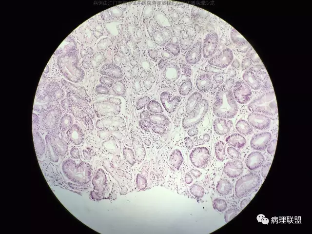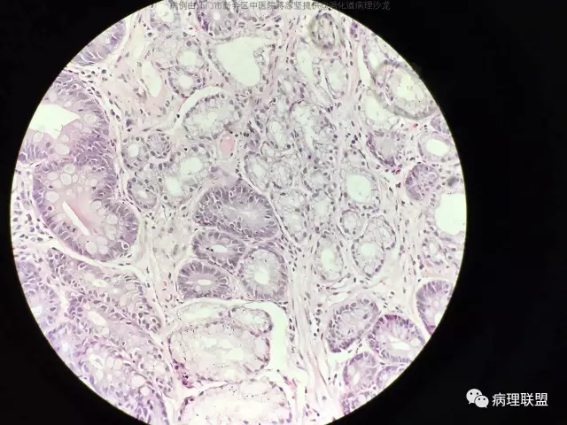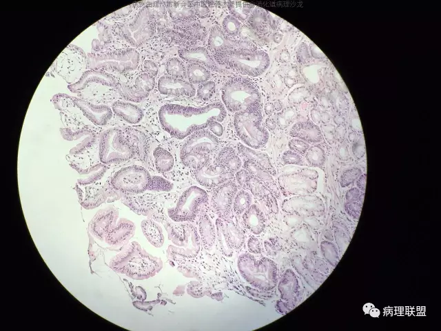 @蒋志坚 您这例组织包埋方向不理想,看不到黏膜肌层,不能准确判断肠化腺体的位置,所以只能明确有肠化,不能明确有无萎缩