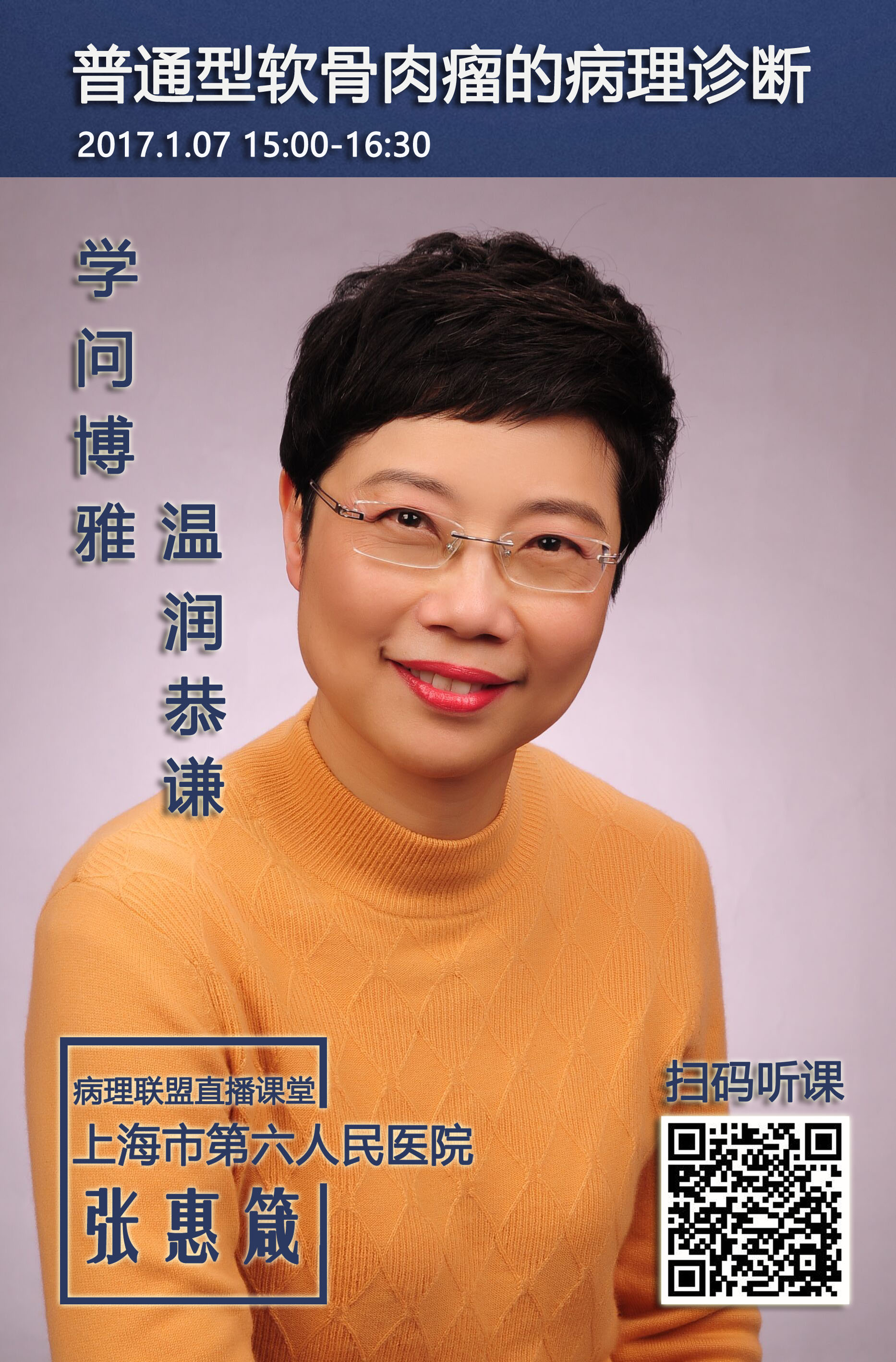 本周病理联盟企业微信直播课堂特邀上海市第六人民医院张惠箴教授给大家带来“普通型软骨肉瘤的病理诊断”。期待您的参与!