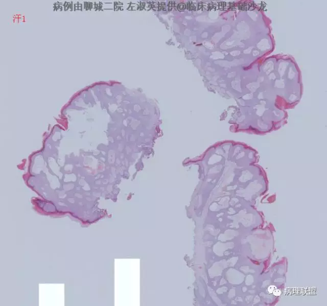 @左淑英 左老师,汗1考虑单纯汗腺棘皮瘤;汗2考虑色素性汗孔瘤。