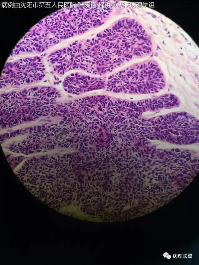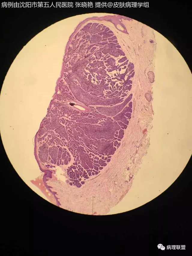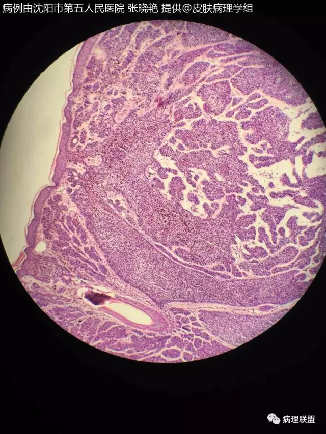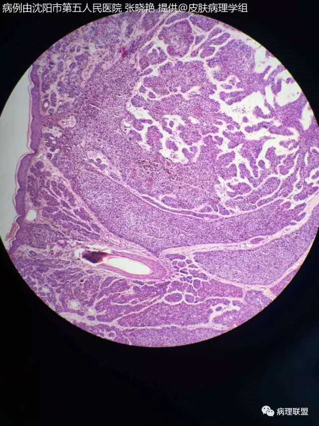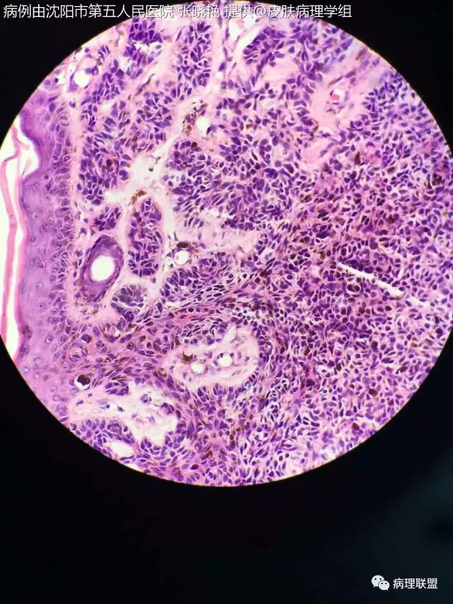 女67头皮肿物5年,带皮组织1x0.5×0.5灰黑色(病例由沈阳市第五人民医院 张晓艳 提供,致谢!)