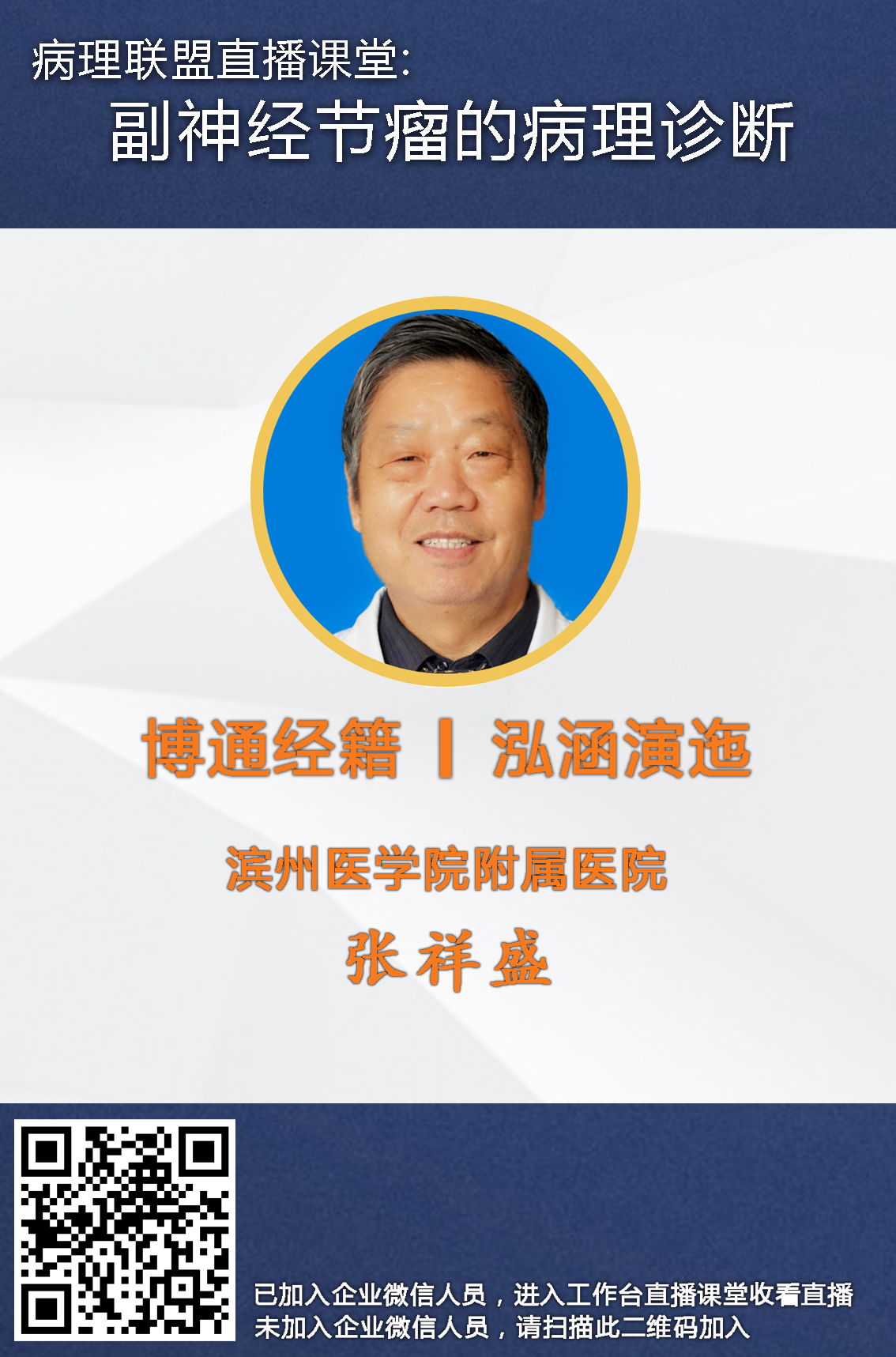 主题:《副神经节瘤的病理诊断》参与形式:病理联盟企业微信→工作台→课堂-病理联盟直播