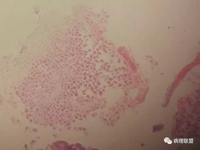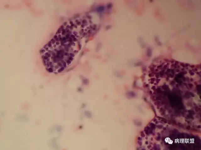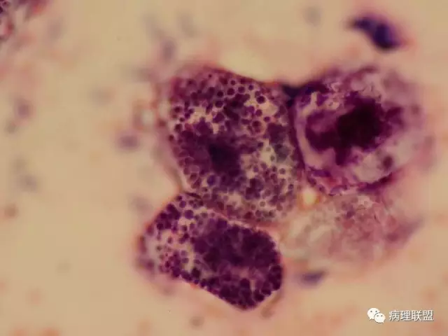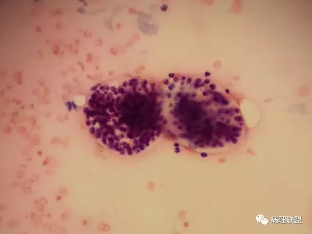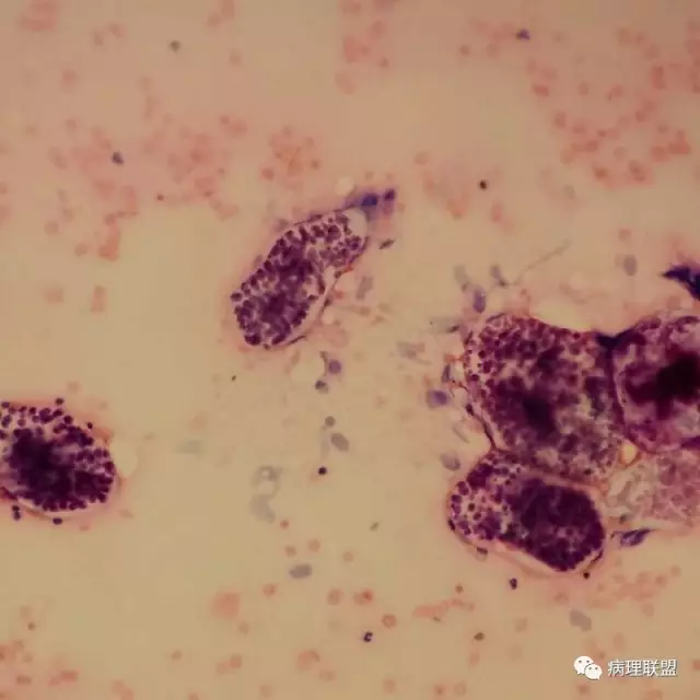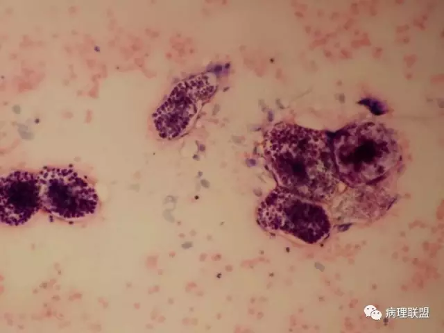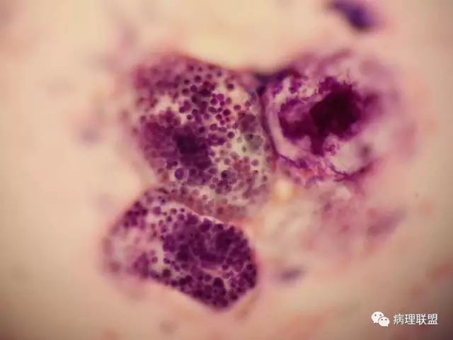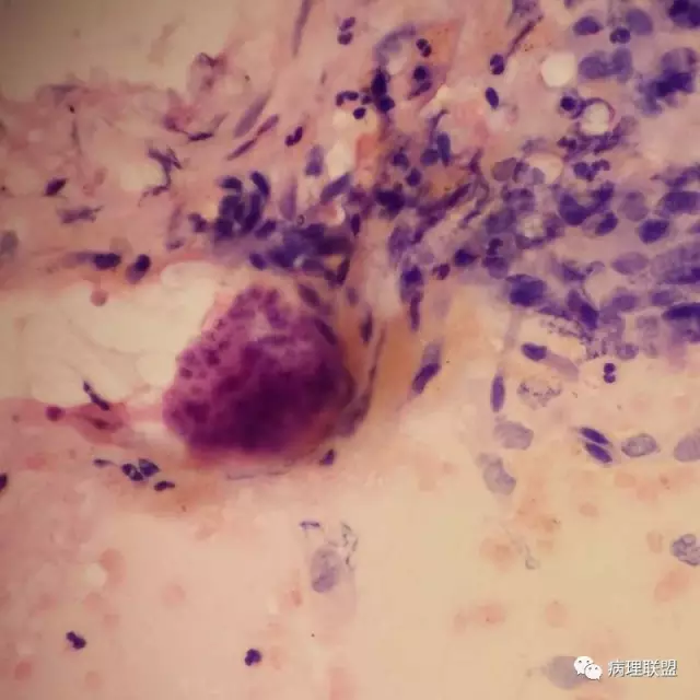 男,59岁,支气管刷片,患者重度颅脑外伤,右上肺尖段新生物刷片(病例由衡阳南方医院病理科钱红 提供,致谢!)