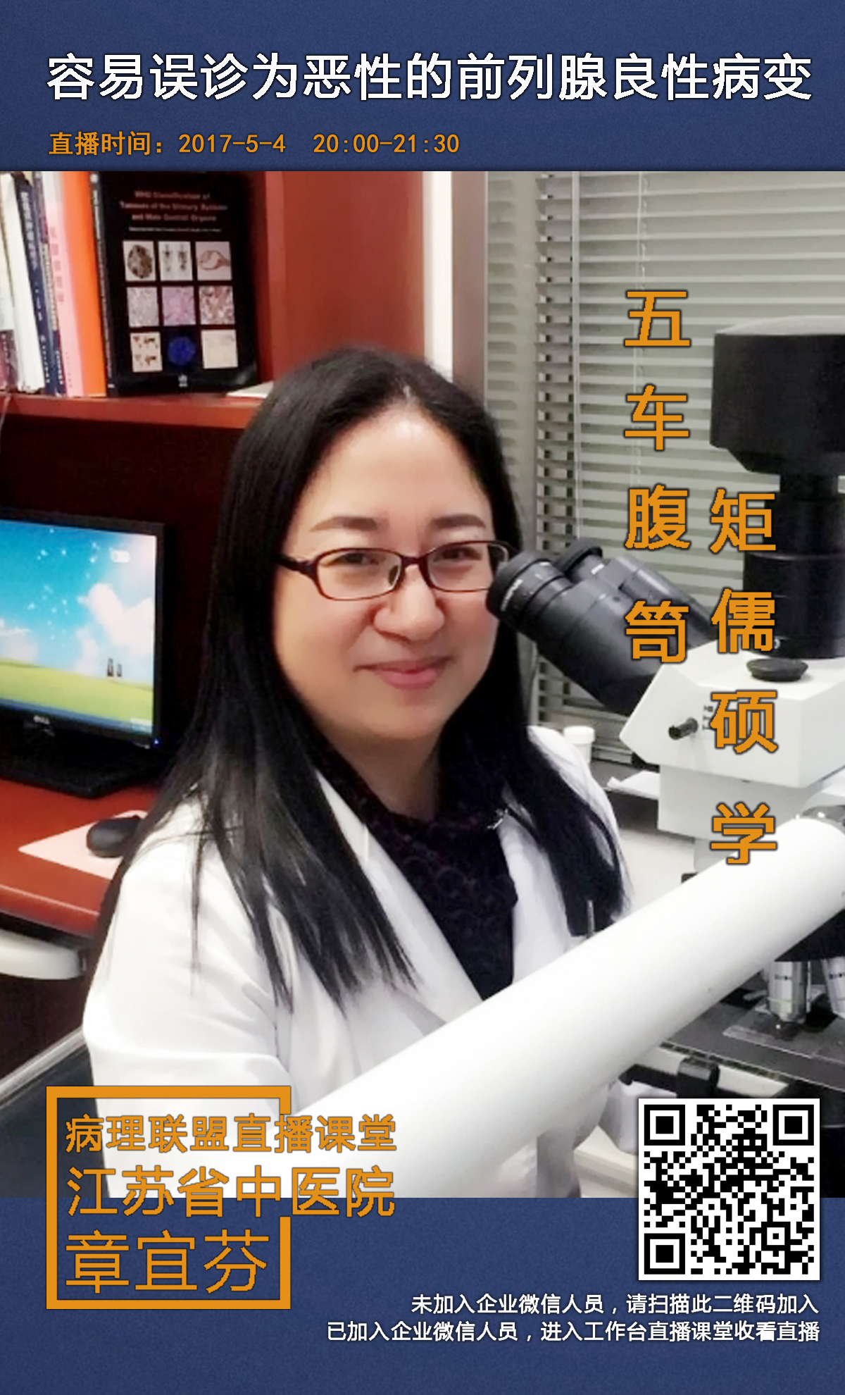 本周病理联盟企业微信直播课堂特邀大夫章宜芬给大家带来“容易误诊为恶性的前列腺良性病变