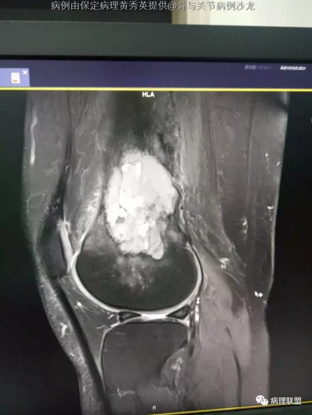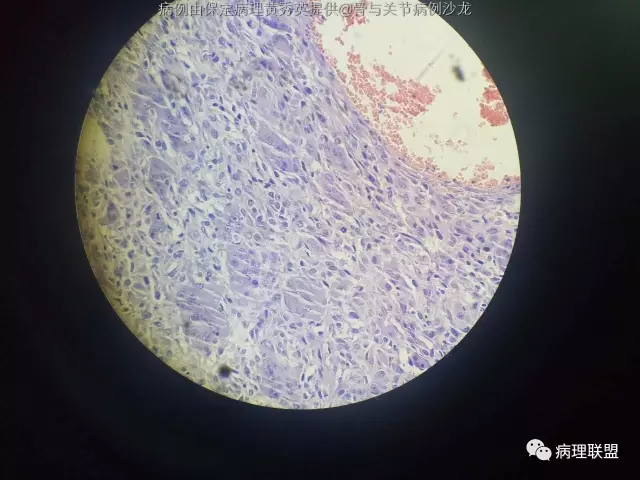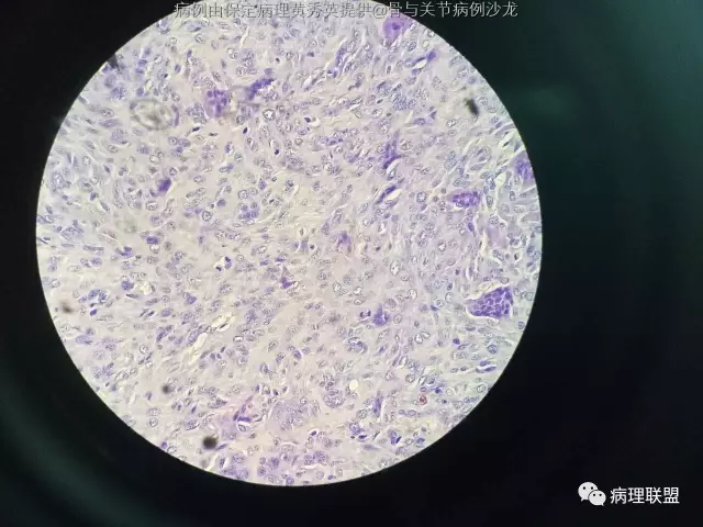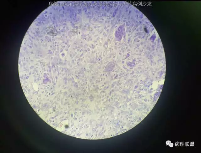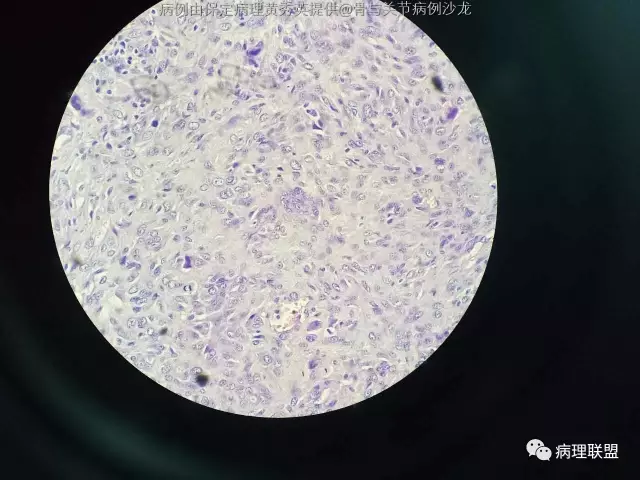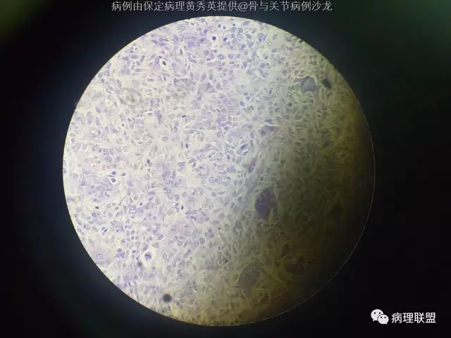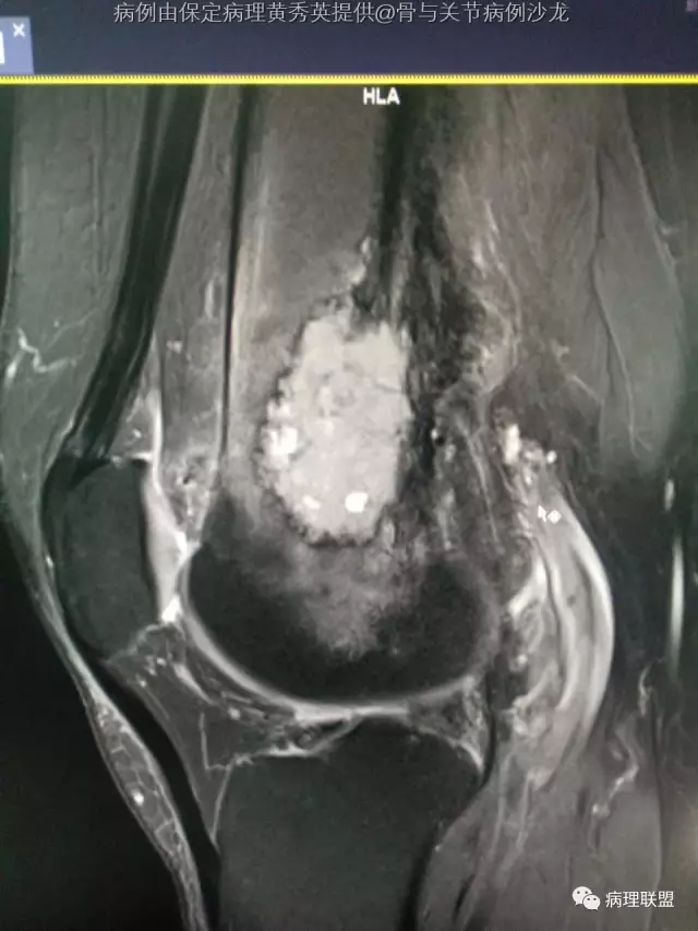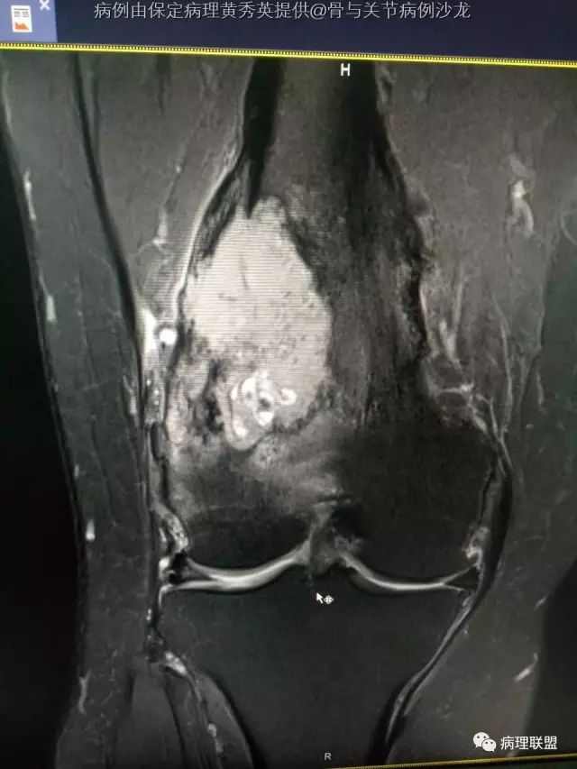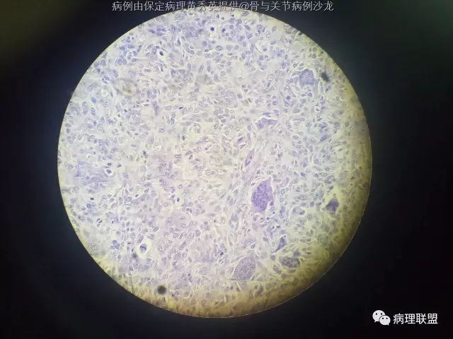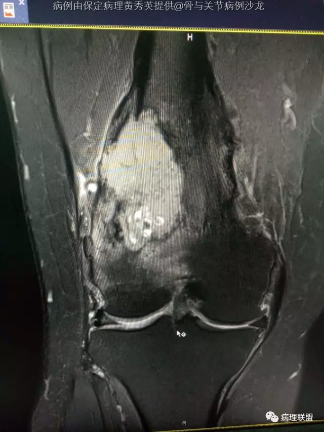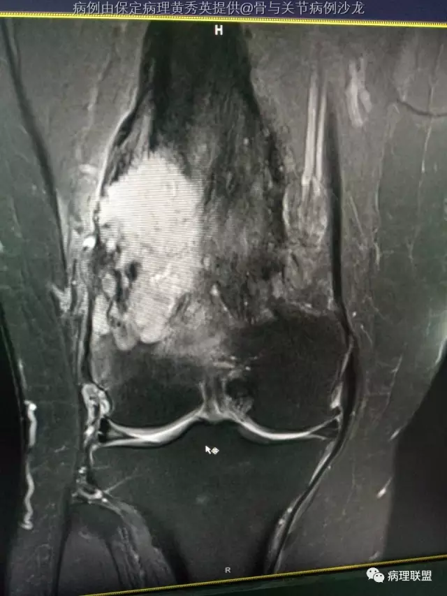 女67岁,股骨下端肿物约6cm,(病例由保定病理黄秀英提供,致谢!)