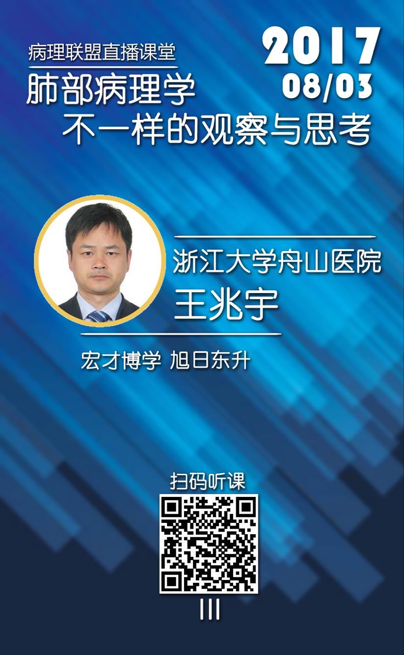 本周病理联盟企业微信直播课堂特邀王兆宇大夫给大家带来《肺部病理学不一样的观察与思考》。