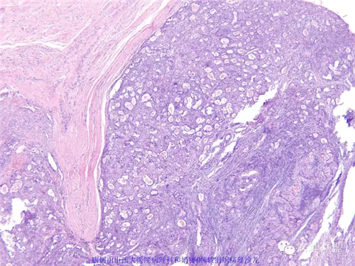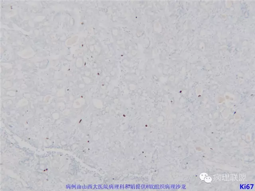 免疫组化结果阴性:S-100,SMA,Calponin,CD10,CD99,CD34,CEA,PHH3。