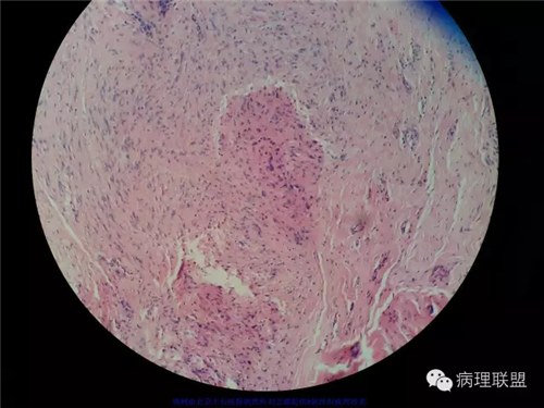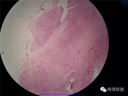 同意诊断为掌纤维瘤病。掌纤维瘤病与足纤维瘤病同属表浅型纤维瘤病,表浅型纤维瘤病是发生于手掌和足底软组织的纤维母细胞增生性病变,以浸润性生长为特征,有局部复发的倾向,但不转移。该病例从临床表现上看就已经能作出掌纤维瘤病的诊断了,镜下改变为典型的掌纤维瘤病的形态。临床上掌纤维瘤病易累及成人,随年龄增长发病率迅速升高,罕见<30岁的患者。男性患者是女性的3-4倍。而足底纤维瘤病发生于儿童和青少年的比例很高。虽然足底病变更多见于男性,但发病率的性别差异不象手掌纤维瘤病那么明显。掌纤维瘤病发生在手的掌面,可引起掌指关节屈曲性挛缩,从而影响手功能,因此,掌纤维瘤病又称为Dupuytren挛缩。