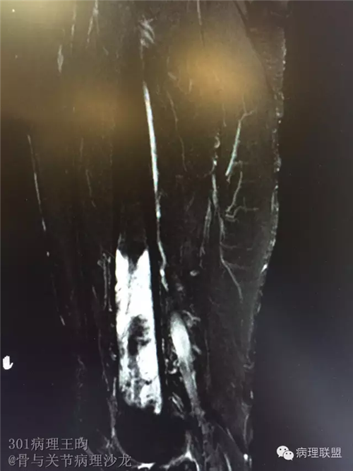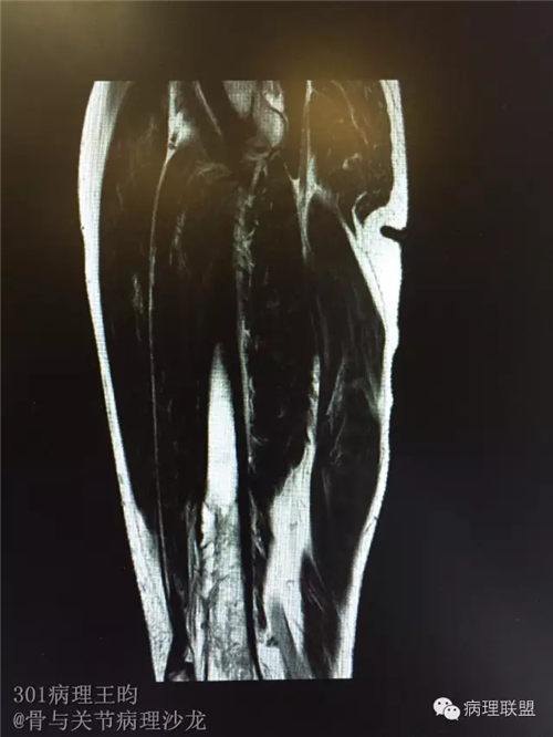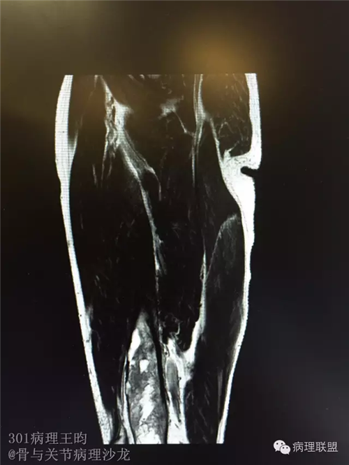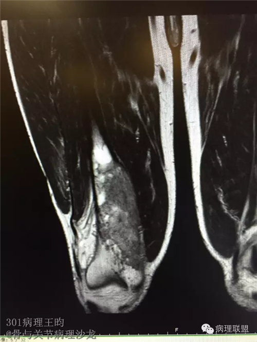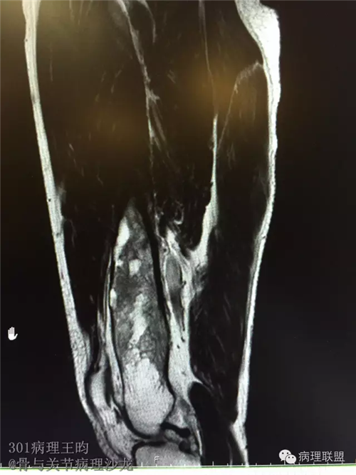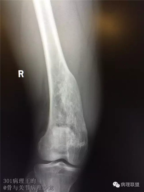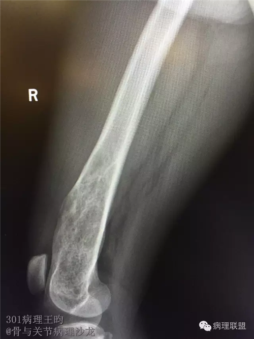 男,36岁,活动后疼痛,发现右股骨远端肿瘤。