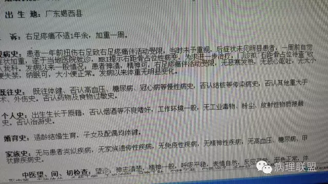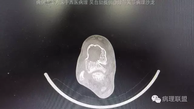 男性,27岁,右距骨肿物,骨巨背景里有成骨(病例由南方医中西医病理 吴自勍提供,致谢!)