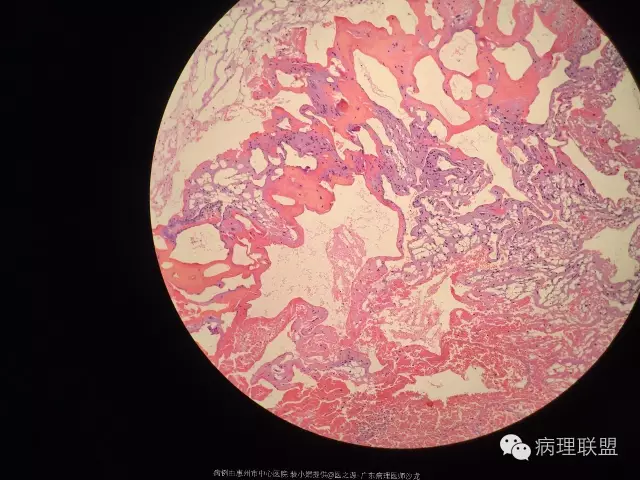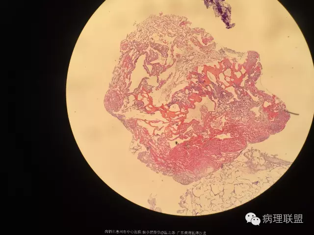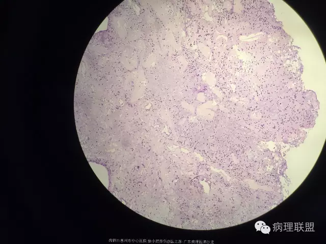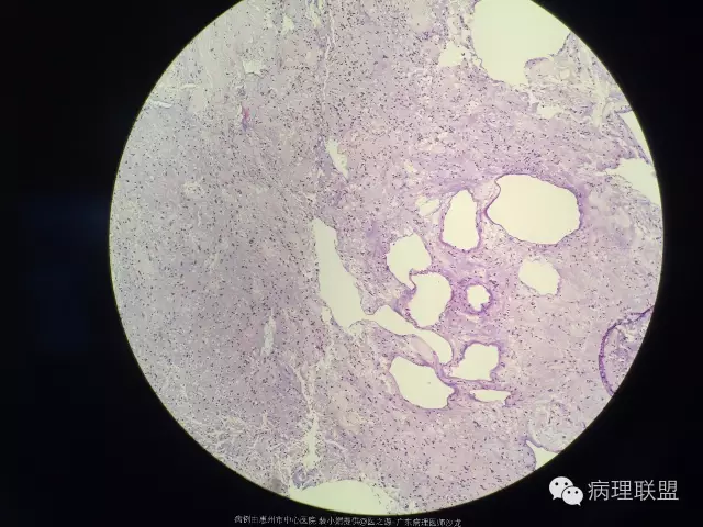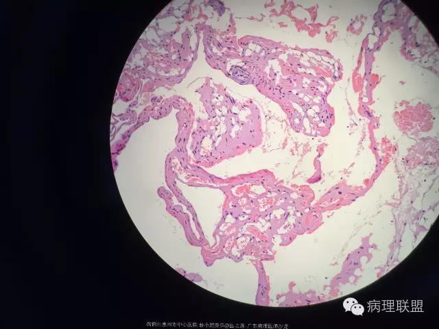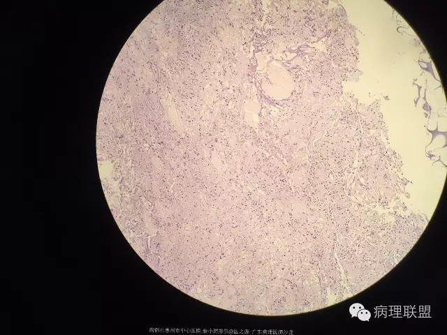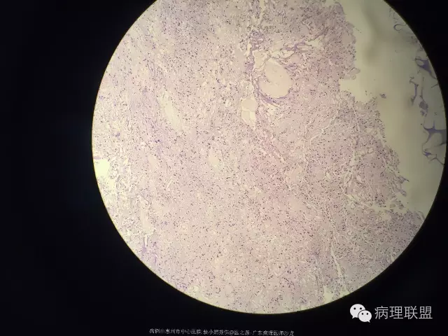 @裴小娟 惠州中心医院 不知组织改变是否已经全部展示出来?就已显示出来的部分倾向毛细胞星形细胞瘤,没有明确血管母改变,也不符合室管膜下瘤的改变。有一些变化是人为挤压或出血所致。个人意见供参考