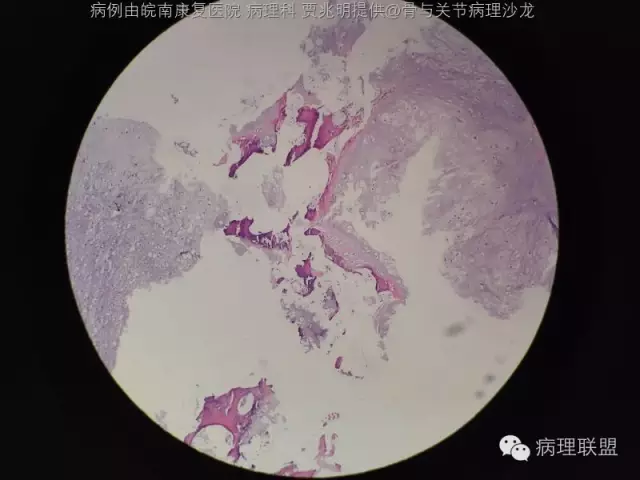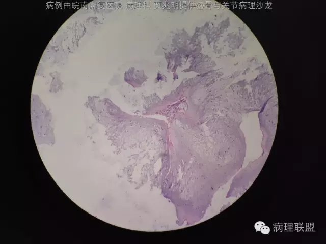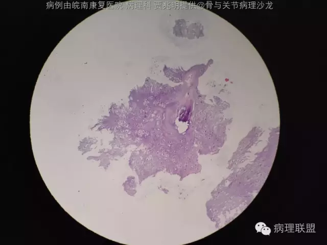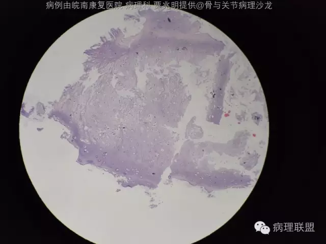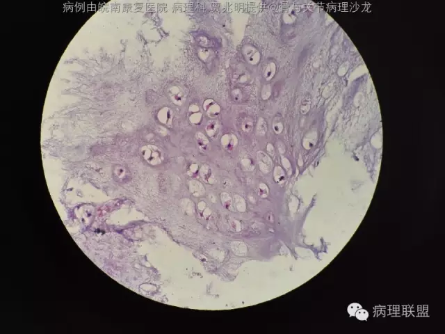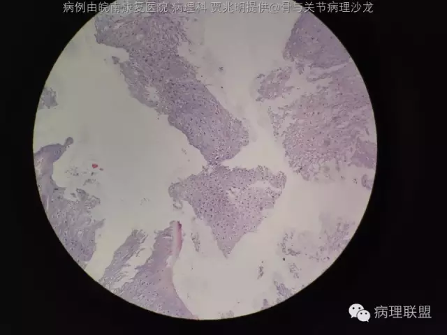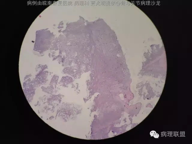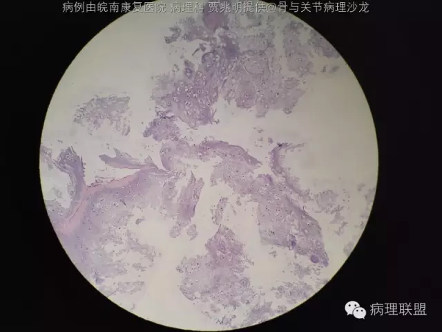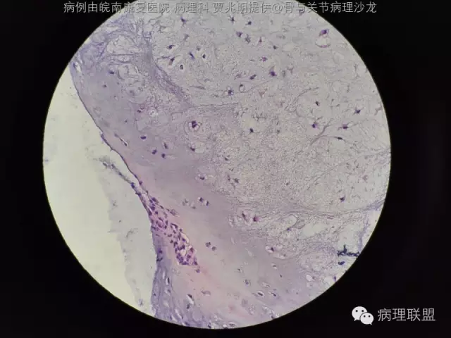 @皖南康复医院 病理科 贾兆明 ,同意@佛中医毛荣军, 内生性软骨瘤,骨包软骨。指骨诊断恶性的标准比长骨标准更严,必须侵犯软组织才诊断。核肥大,双核软骨瘤可以允许。