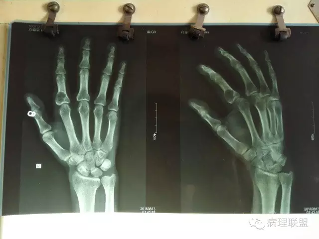 食指为内生性软骨瘤,发生于指的内生软骨性肿瘤,即使有明显异性性,都不能随便打恶性。原则上。如果影像学有骨皮质破坏,侵袭性生长,那才考虑有没有恶性。