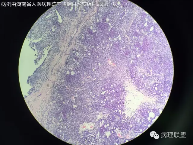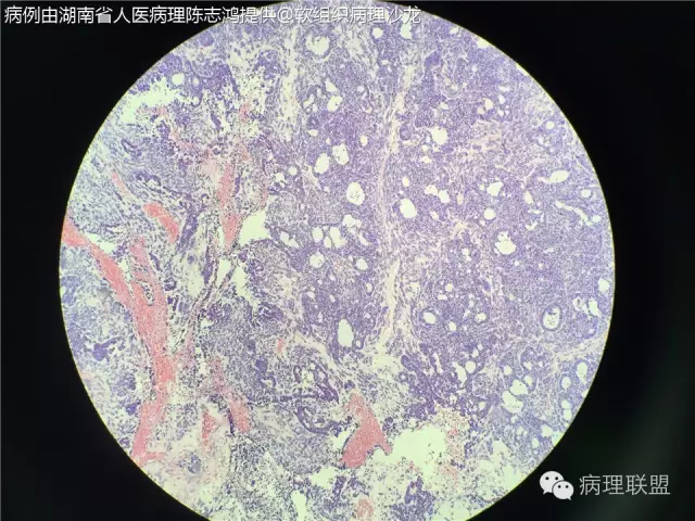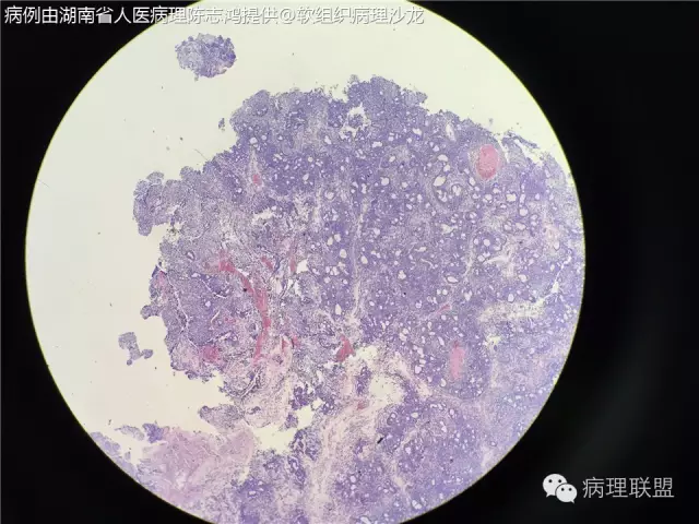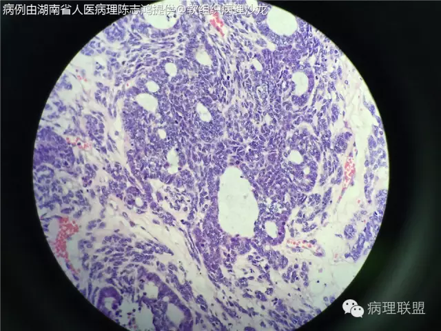 @镇江四院病理科许跃 我有点小疑惑,书上说腺样结构内是嗜酸性分泌物,但我这一例不是,不知道是否有意义